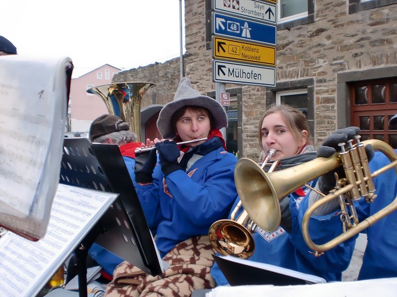 nahmen der Musikverein natürlich am örtlichen Umzug teil. Es war zwar ziemlich kalt, dafür allerdings blieb es trocken.